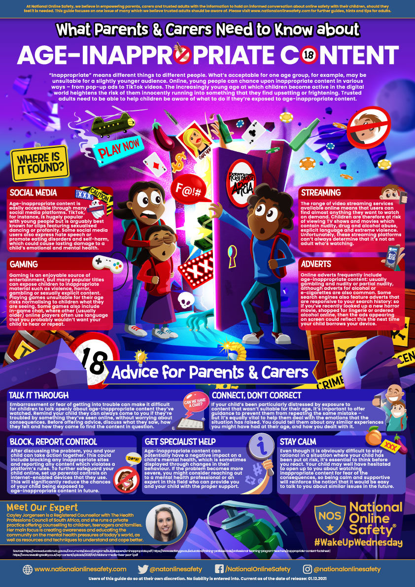 Encourage your child to tell a teacher or you if they see something worrying online.